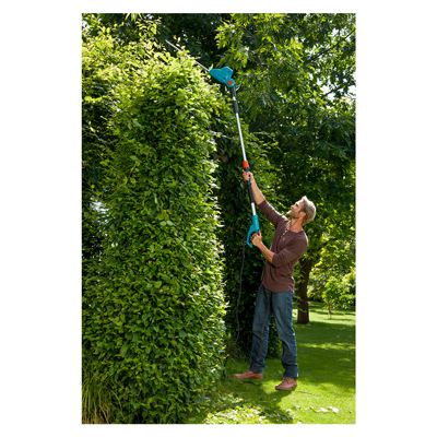 Με το Τηλεσκοπικό Ηλεκτρικό Μπορντουροψάλιδο THS 500/48, η φροντίδα των ψηλών θάμνων είναι πολύ εύκολη. Χάρη στη ρυθμιζόμενη τηλεσκοπική χειρολαβή, μπορείτε να δώσετε τέλειο σχήμα στους θάμνους, ενώ θα είστε ασφαλείς και με τα δύο πόδια στο έδαφος. Η κεφαλή του μπορντουροψάλιδου έχει δυνατότητα κλίσης προκειμένου να προσαρμόσετε τη λεπίδα στην επιθυμητή θέση κοπής. Αυτό επιτρέπει την εύκολη και με ακρίβεια κοπή των κορυφών των φραχτών, χωρίς να χρειάζεται να ανεβείτε σε σκάλα. Από την άλλη πλευρά, δεν χρειάζεται να γονατίσετε, καθώς η κοπή κοντά στο έδαφος μπορεί να γίνει εξίσου εύκολα.