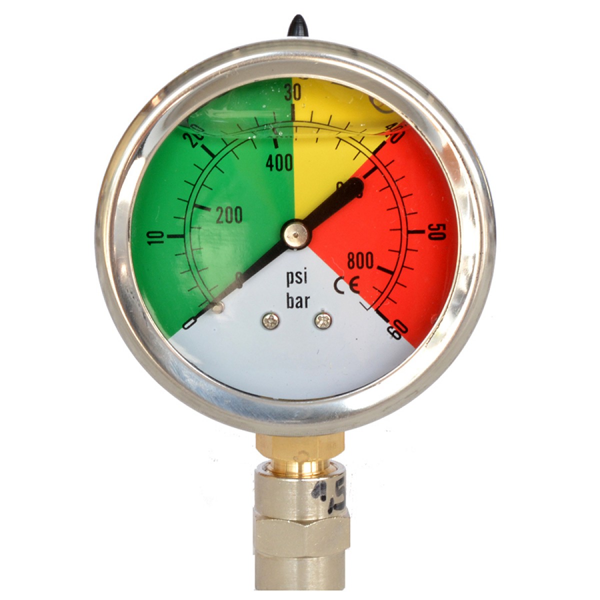 Μανόμετρο ψεκασμού γλυκερίνης με περίβλημα inox. Διάμετρος φ63 και παροχή κάθετη 1/4''. Μέγιστη ένδειξη 0-80bar.