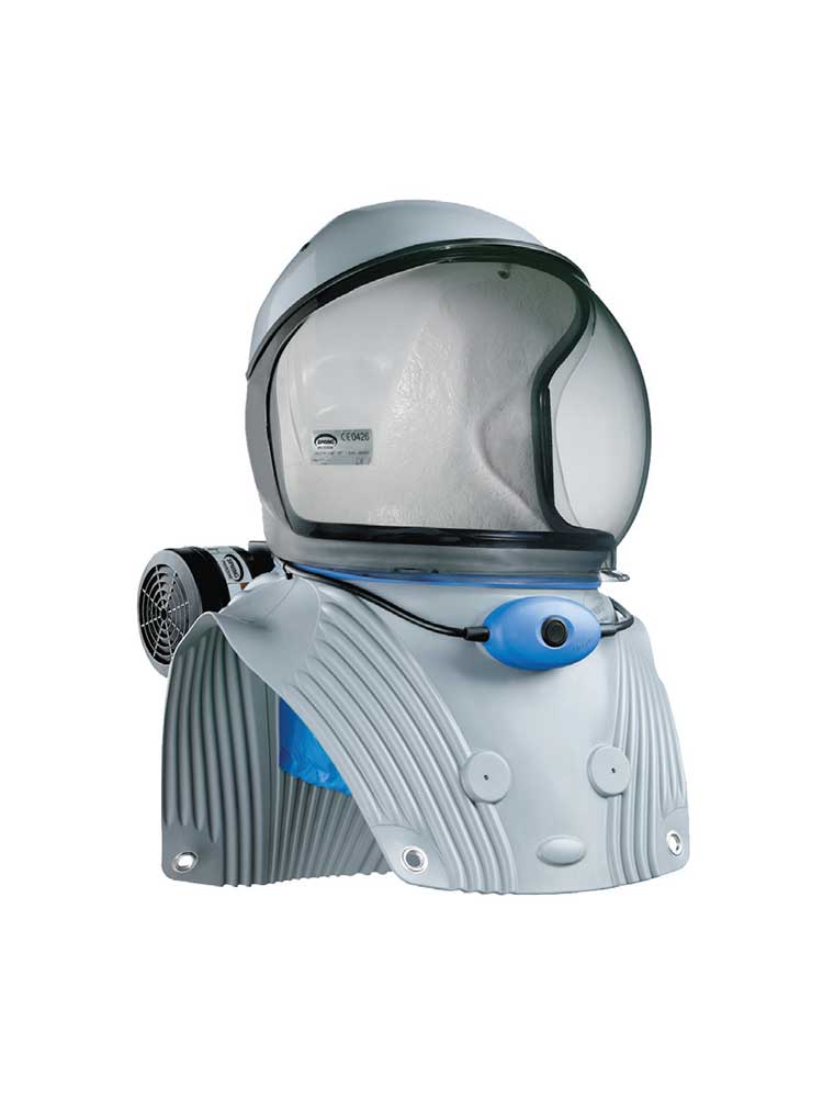 4. Ο φιλτραρισμένος δροσερός αέρας κυκλοφορεί σε όλο τον μεγάλο και στεγανό θάλαμο της κάσκας υπό κατάλληλη πίεση εμποδίζοντας την δυσκολία στην αναπνοή, την θάμπωση του τζαμιού αλλά ακόμη και κάθε πιθανή εισροή.