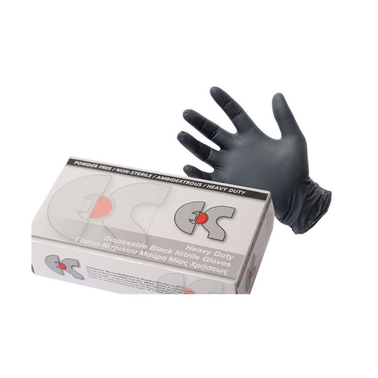 Γάντια μιας χρήσεως νιτριλίου μαύρα «heavy duty» χωρίς πούδρα αμφιδέξια, από φυσικό ελαστικό με εξαιρετική εφαρμογή, αφή και αντοχή, κατάλληλα για εργαστήρια, χημεία, συνεργεία.