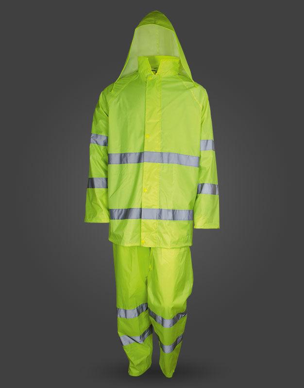Αδιάβροχο κοστούμι PVC υψηλής ορατότητας με κουκούλα μέγεθος LARGE.