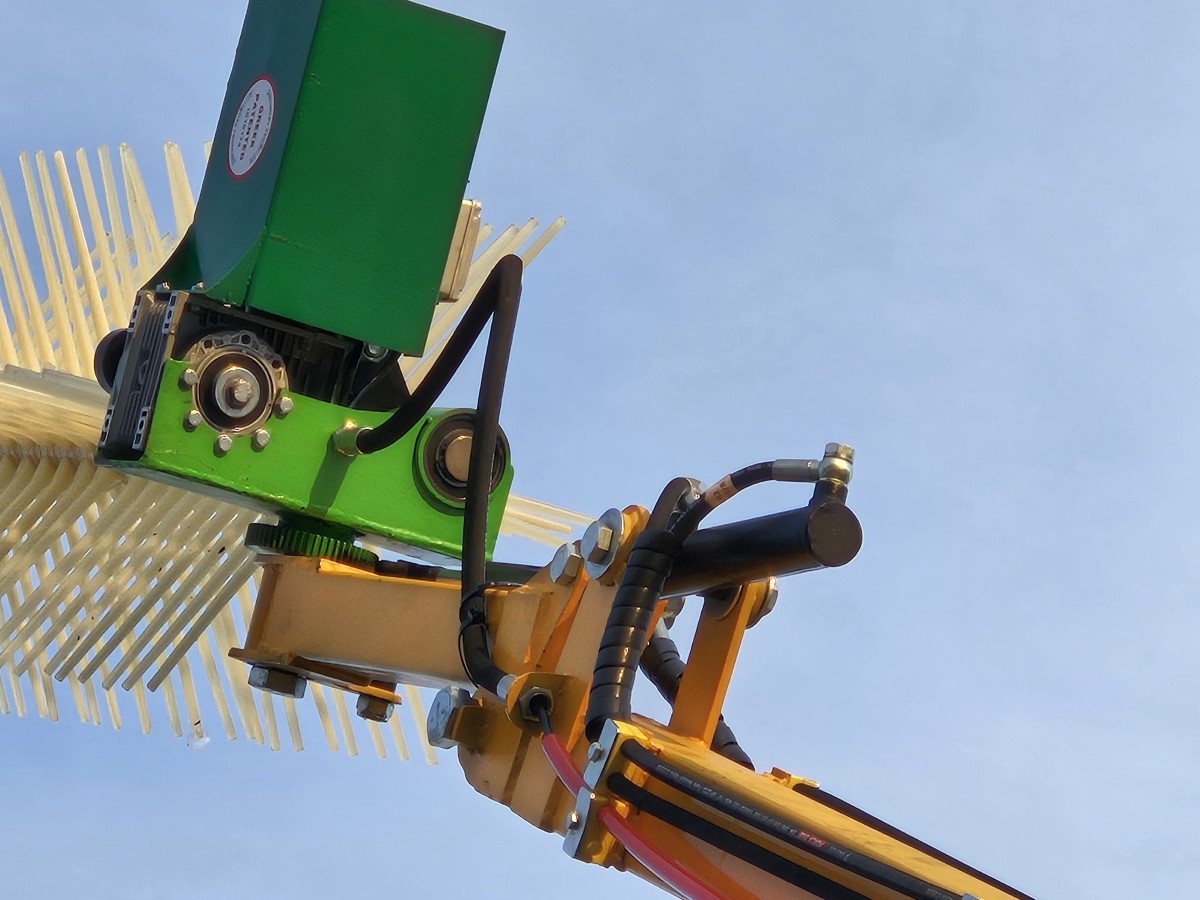 Αποτελείται από ένα αυτοφερόμενο πλαίσιο με δυνατότητα κίνησης μέσω κινητήρων προσαρμοσμένων στους τροχούς, στο οποίο είναι προσαρμοσμένος περιστρεφόμενος τηλεσκοπικός βραχίονας. Ο άξονας της βούρτσας εκτελεί στροφική ταλάντωση προσδίδοντας παλμική κίνηση τύπου κουπεπέ, στις ελαστικές βέργες οι οποίες "ραβδίζουν" με αυτό τον τρόπο τα κλαδιά και τινάζεται ο ελαιόκαρπος.
